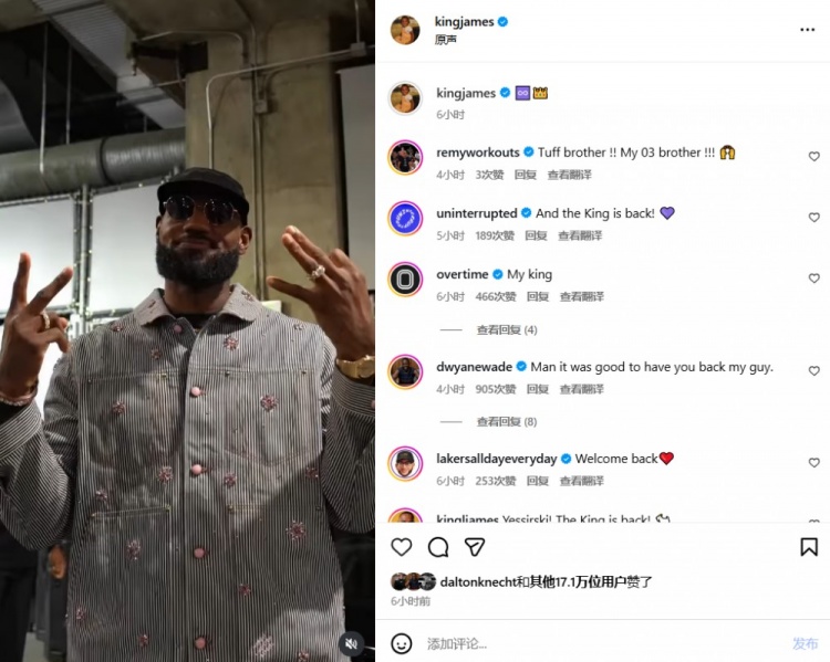 在這場比賽中詹姆斯7投4中,史首社媒曬照三分3中2砍下11分3籃板12助攻。人詹